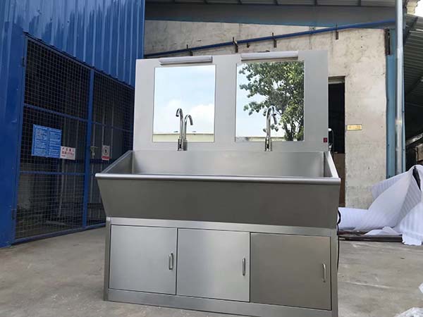 醫用不銹鋼洗手池采用優質304不銹鋼板制造,耐腐蝕,抗晶間腐蝕。不銹鋼醫用洗手池有單人、雙人、三人、四人及多人洗手池,出水方式有自動感應式、膝碰式、腳踏式。可自行選購電熱水器、不銹鋼出刷器。